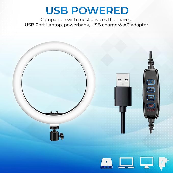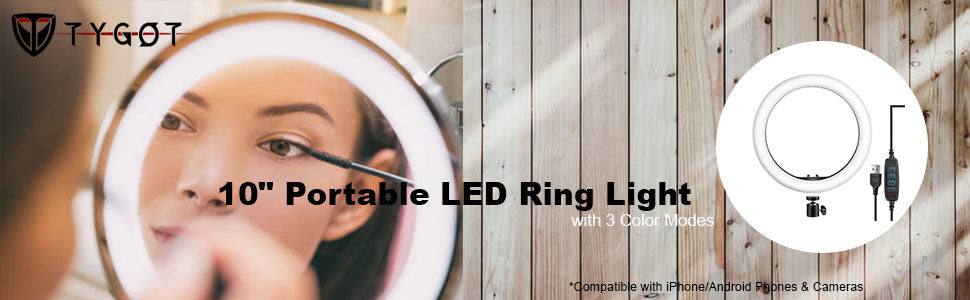 Tygot 10" Portable LED Ring Light with 3 Color Modes Dimmable Lighting